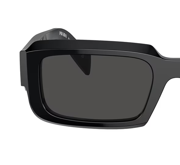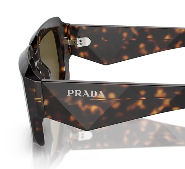 Exitosa forma de varilla geométrica de gran tamaño con una nueva versión facetada que recrea el icónico triángulo con el logotipo de las letras de Prada.
